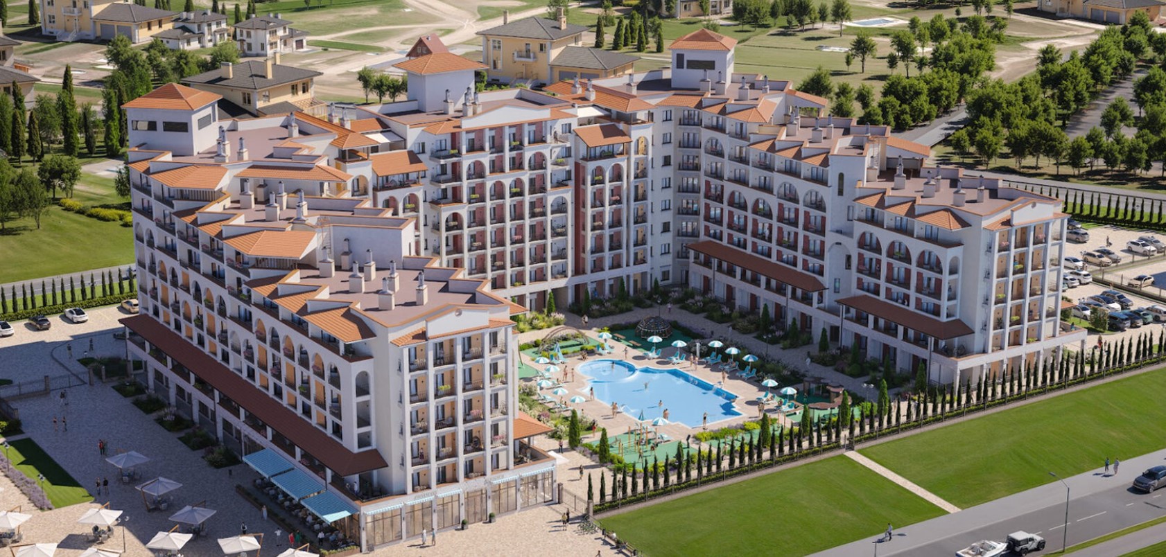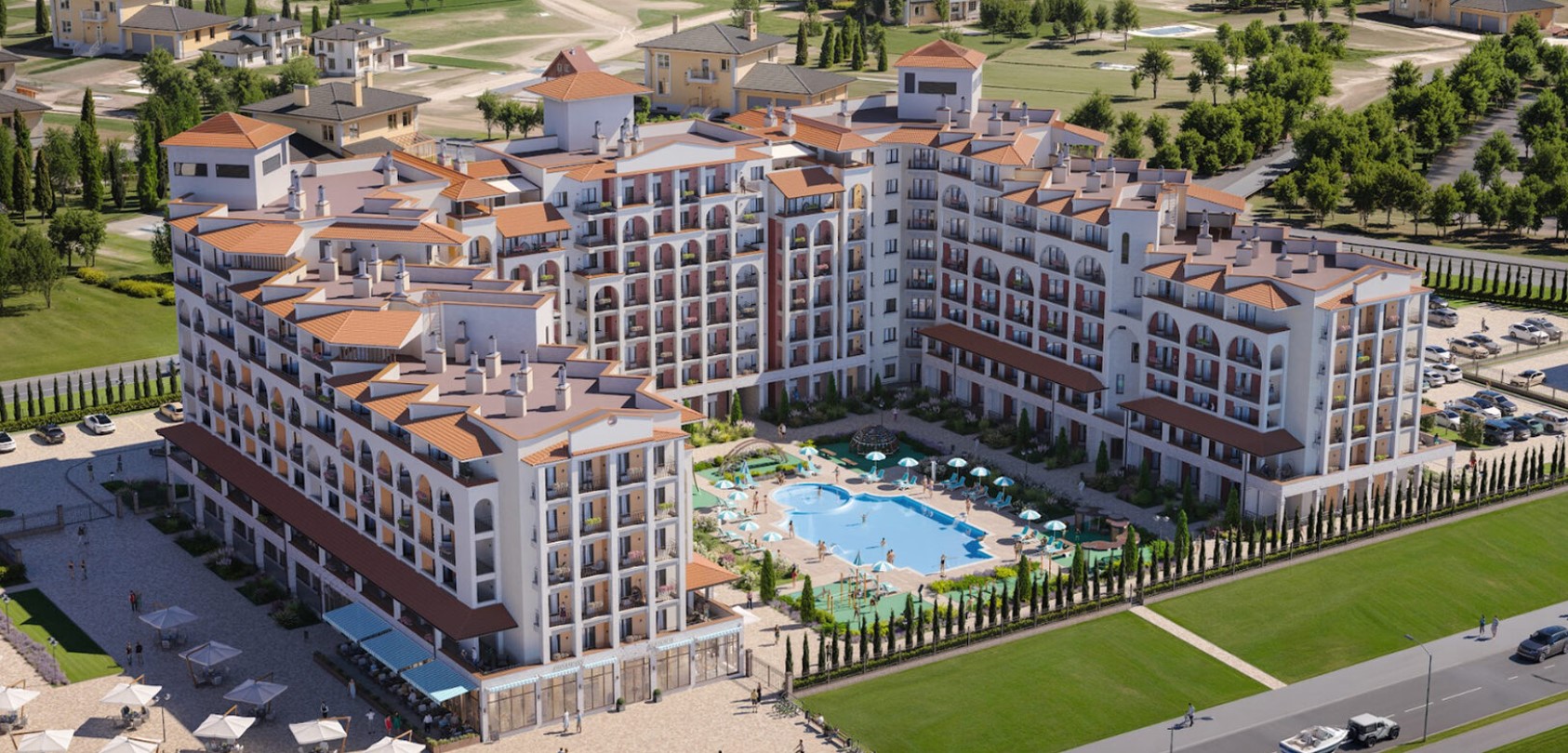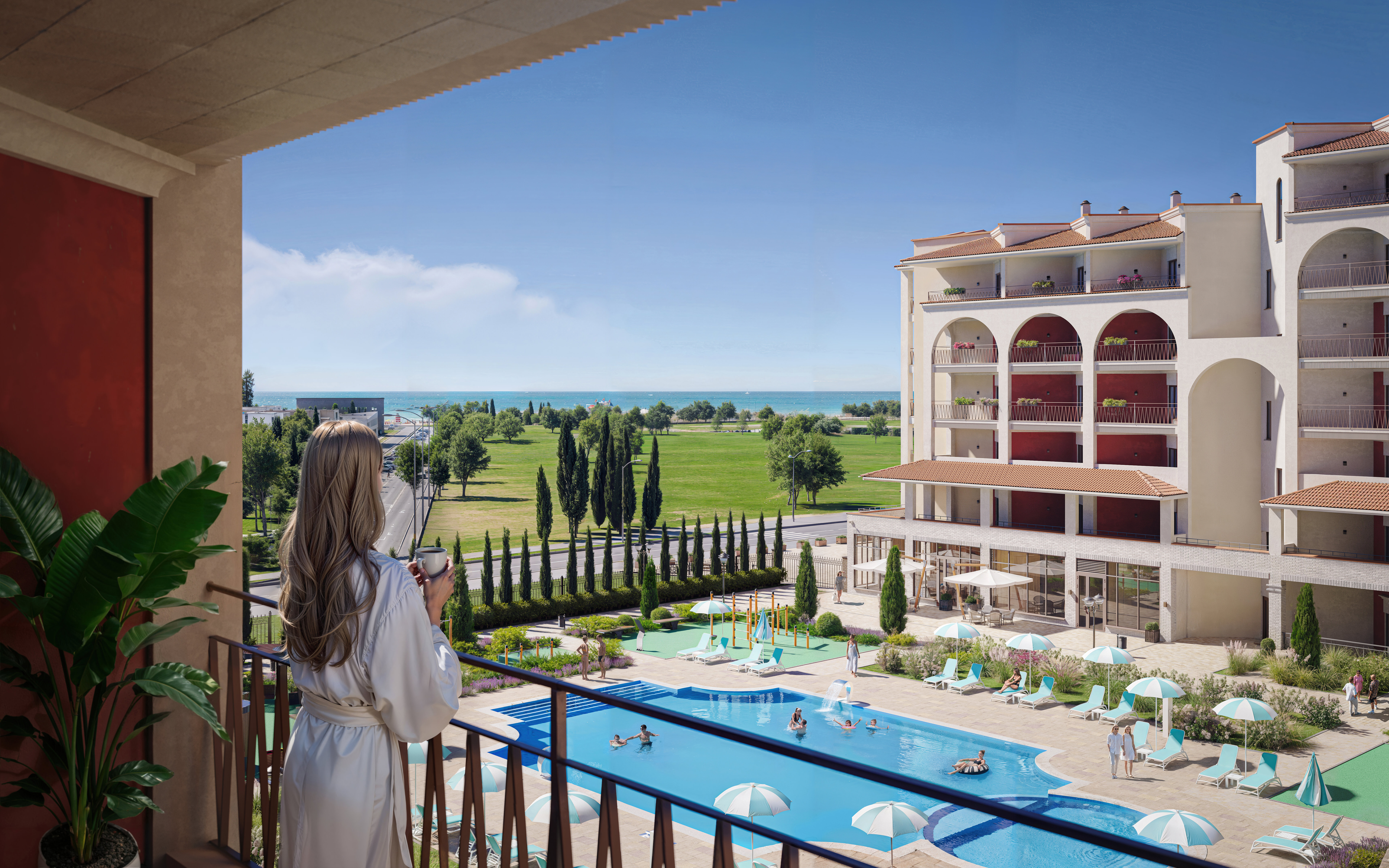 Современный архитектурный ансамбль с продуманной внутренней средой: всё для отдыха, спорта и гармоничной жизни у моря
